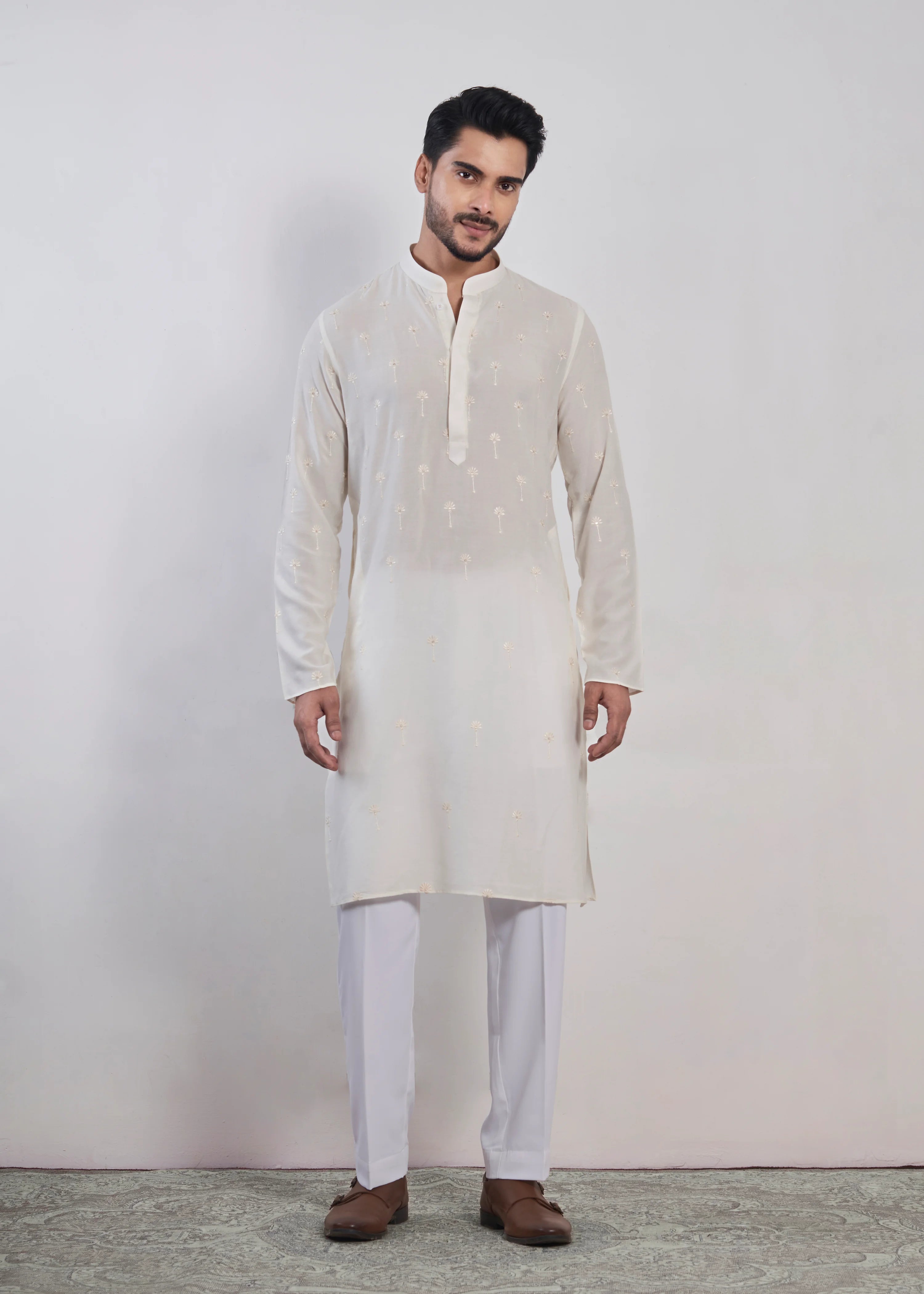 - A classic patterned embroidered cotton kurta with sequin.