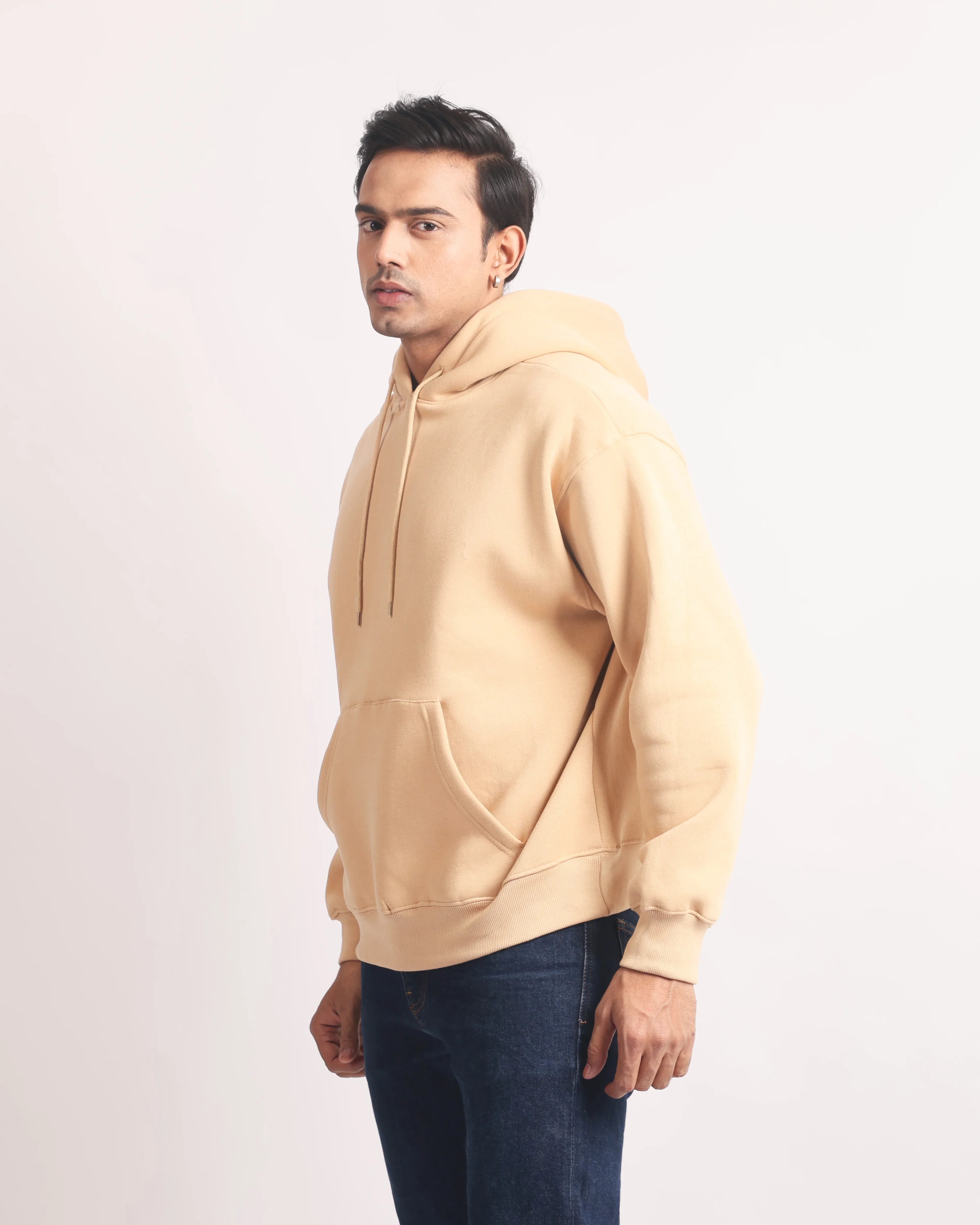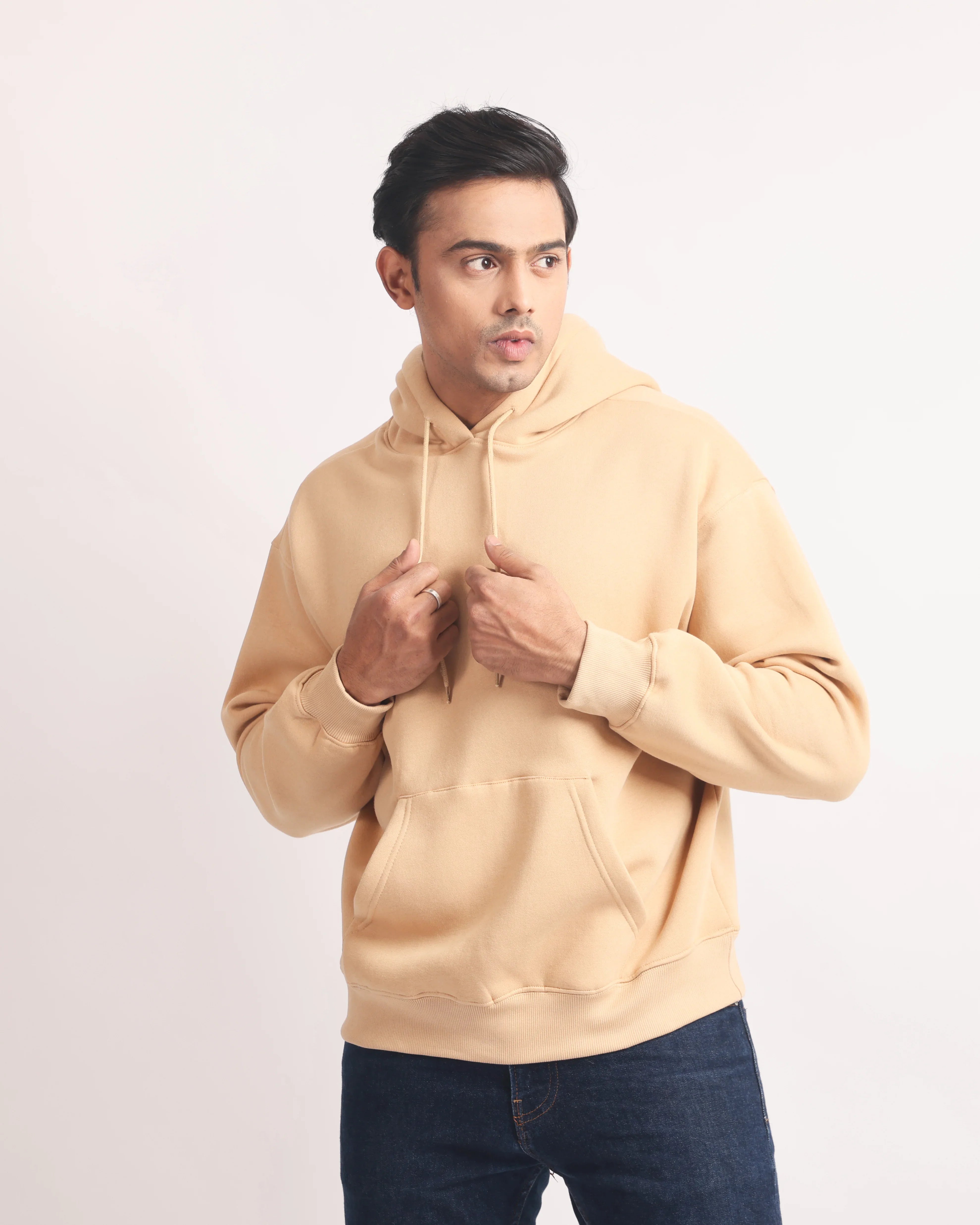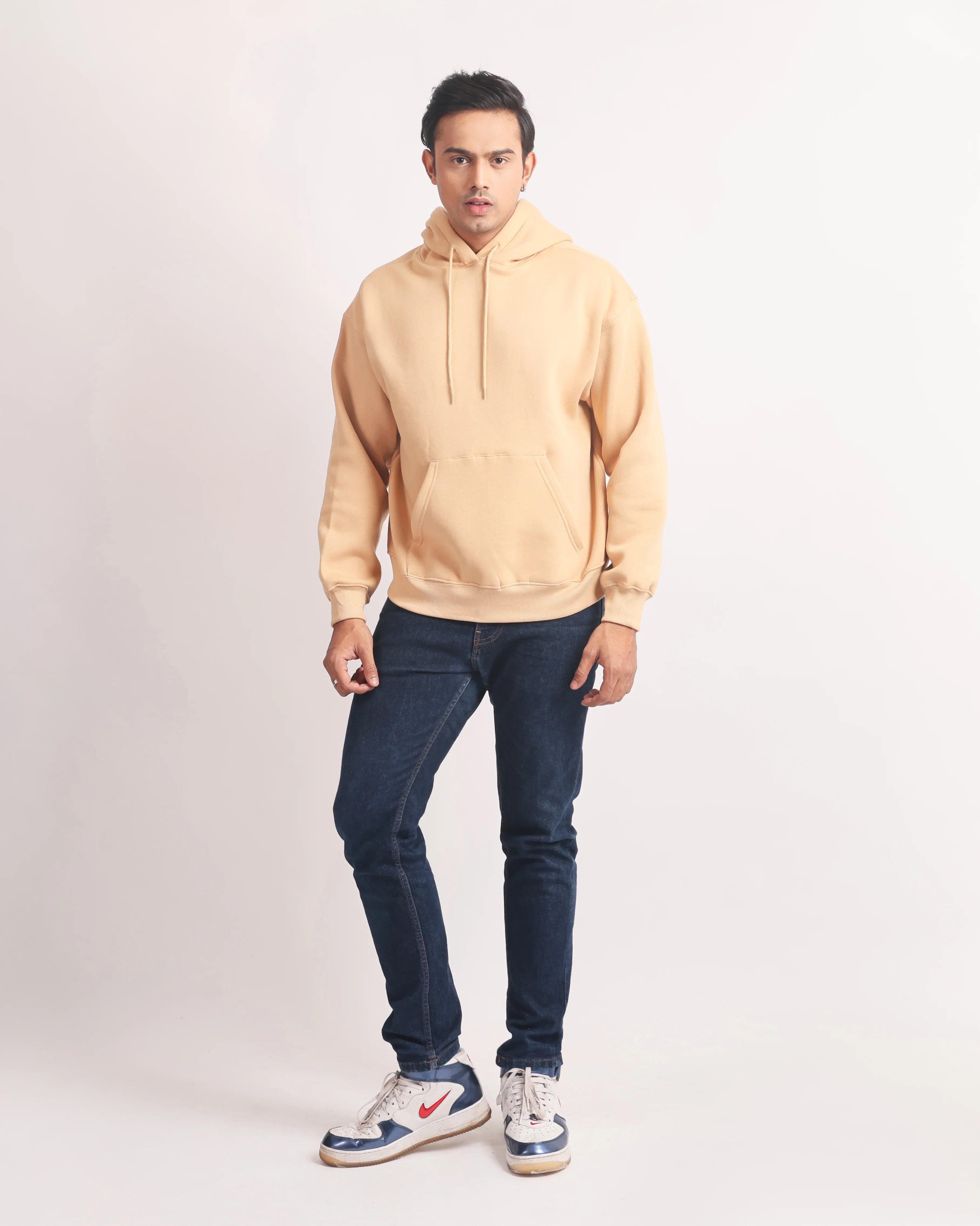 Hoodie in heavyweight (400GSM) sweatshirt fabric made from a cotton blend with a soft brushed inside. Jersey-lined, drawstring hood, dropped shoulders, long sleeves, a kangaroo pocket and wide ribbing at the cuffs and hem. Loose fit for a generous but not oversized silhouette.