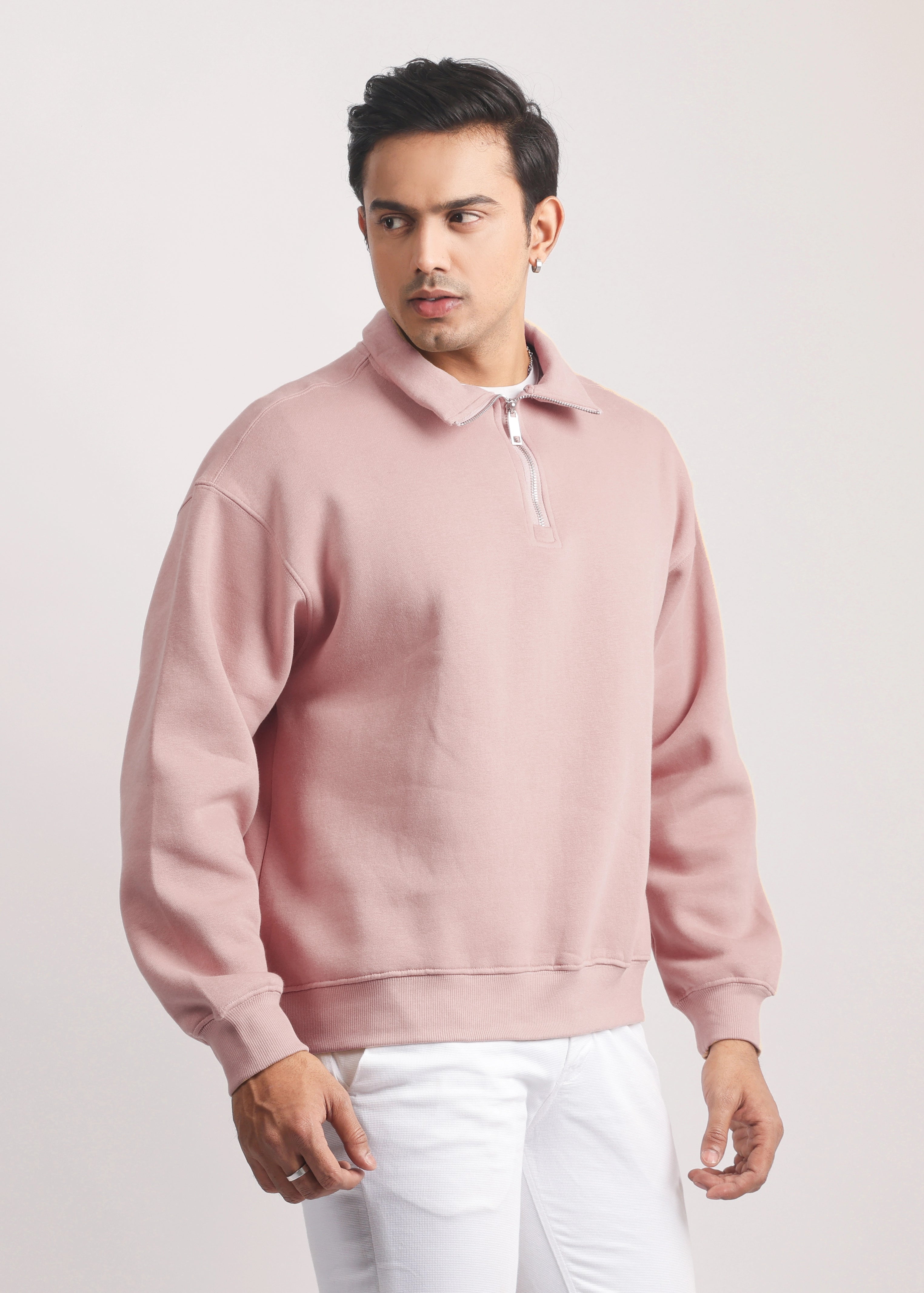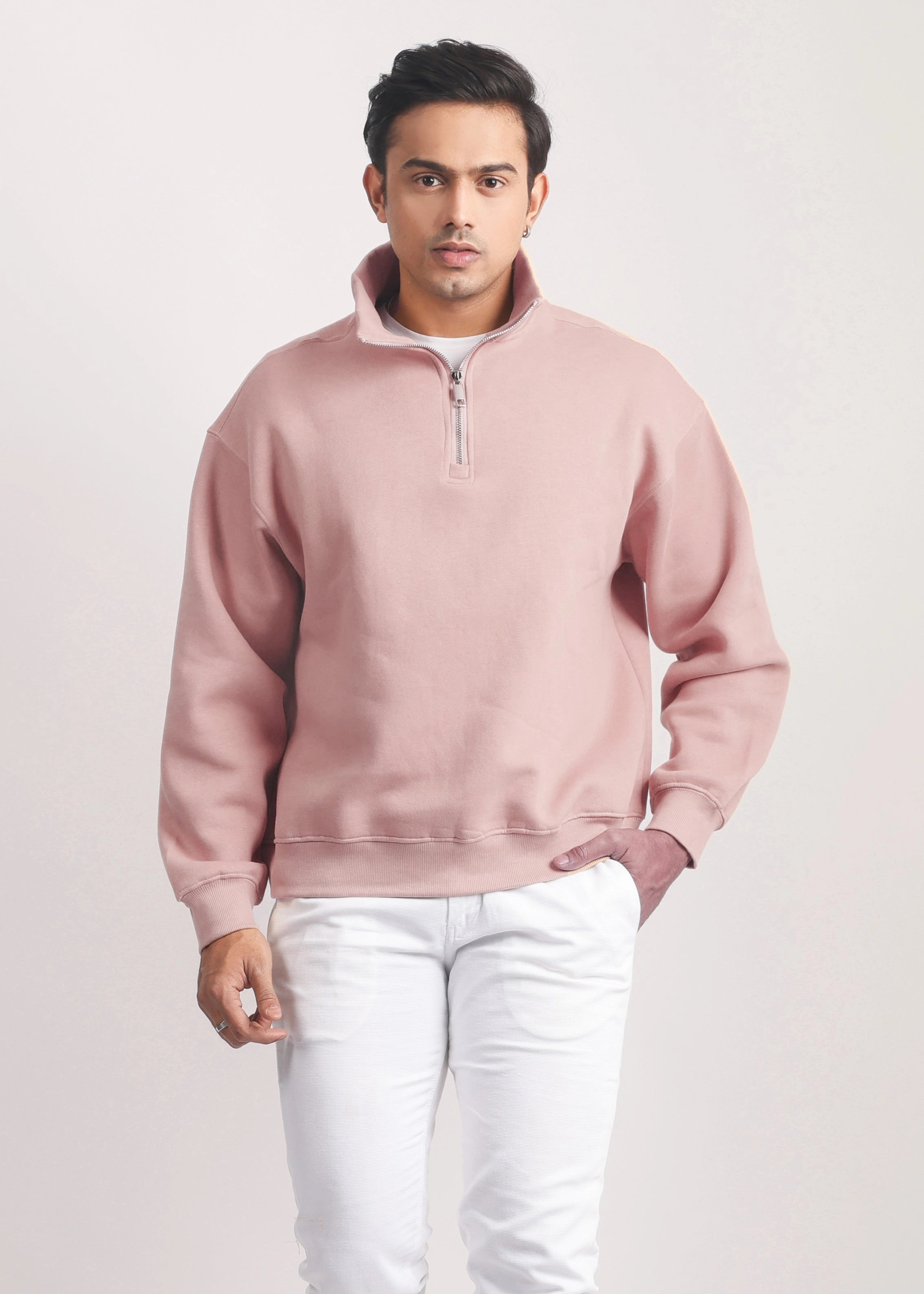 Best in sweatshirt fabric made from a 400 GSM Organic cotton blend with a soft brushed inside. Relaxed fit with a stand-up collar, zip at the top, dropped shoulders, long sleeves and ribbing at the cuffs and hem.