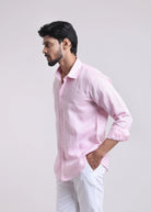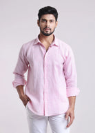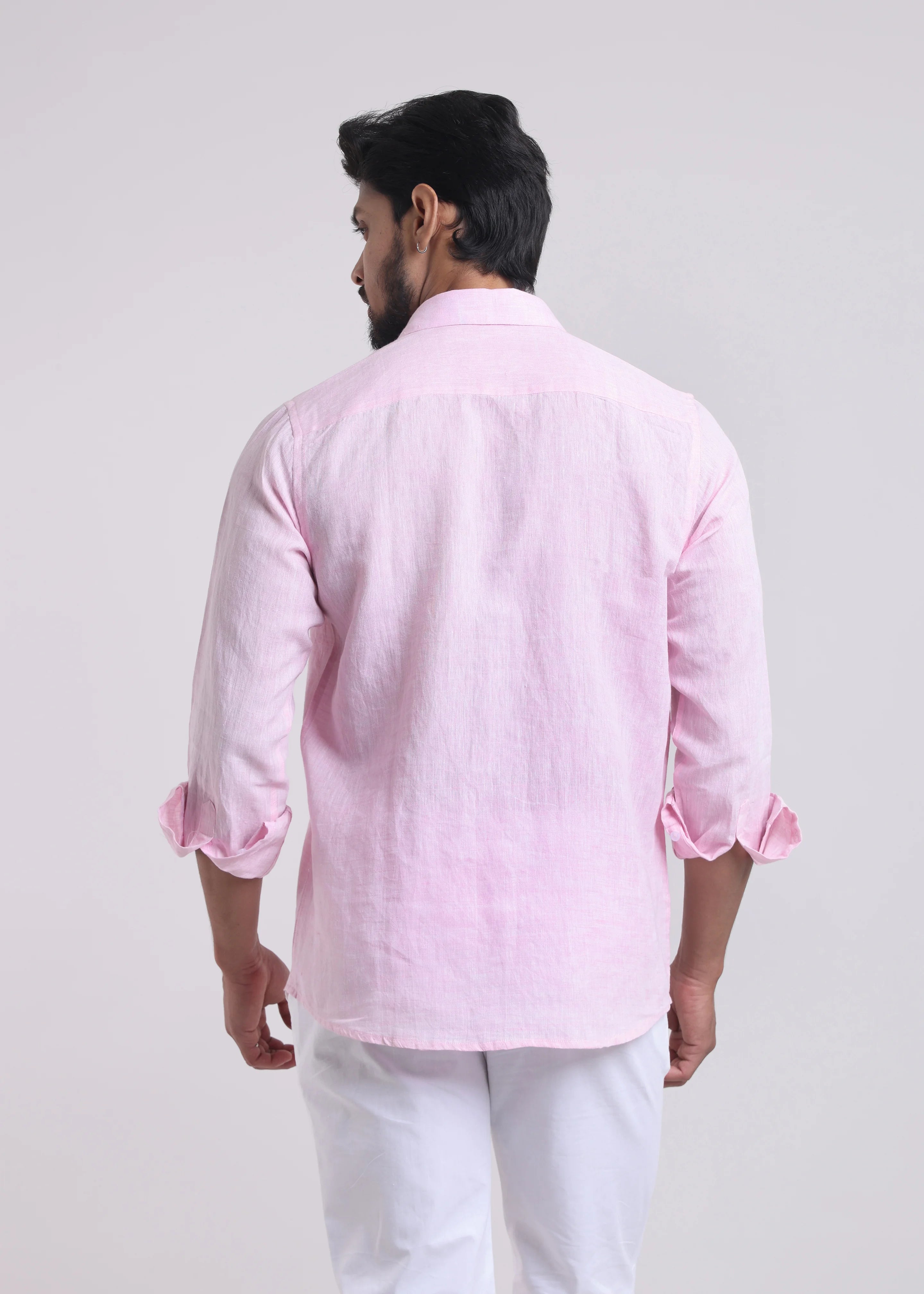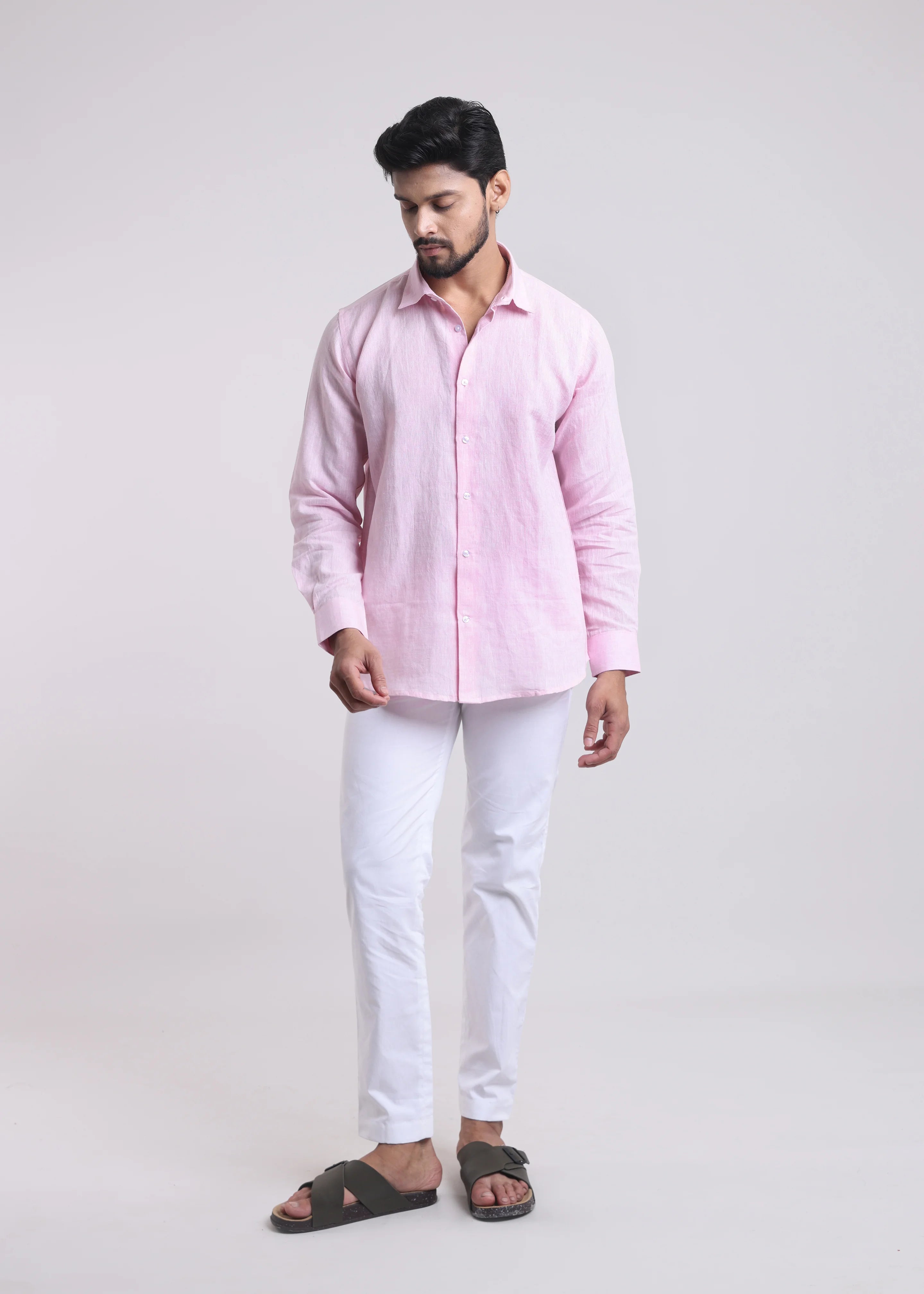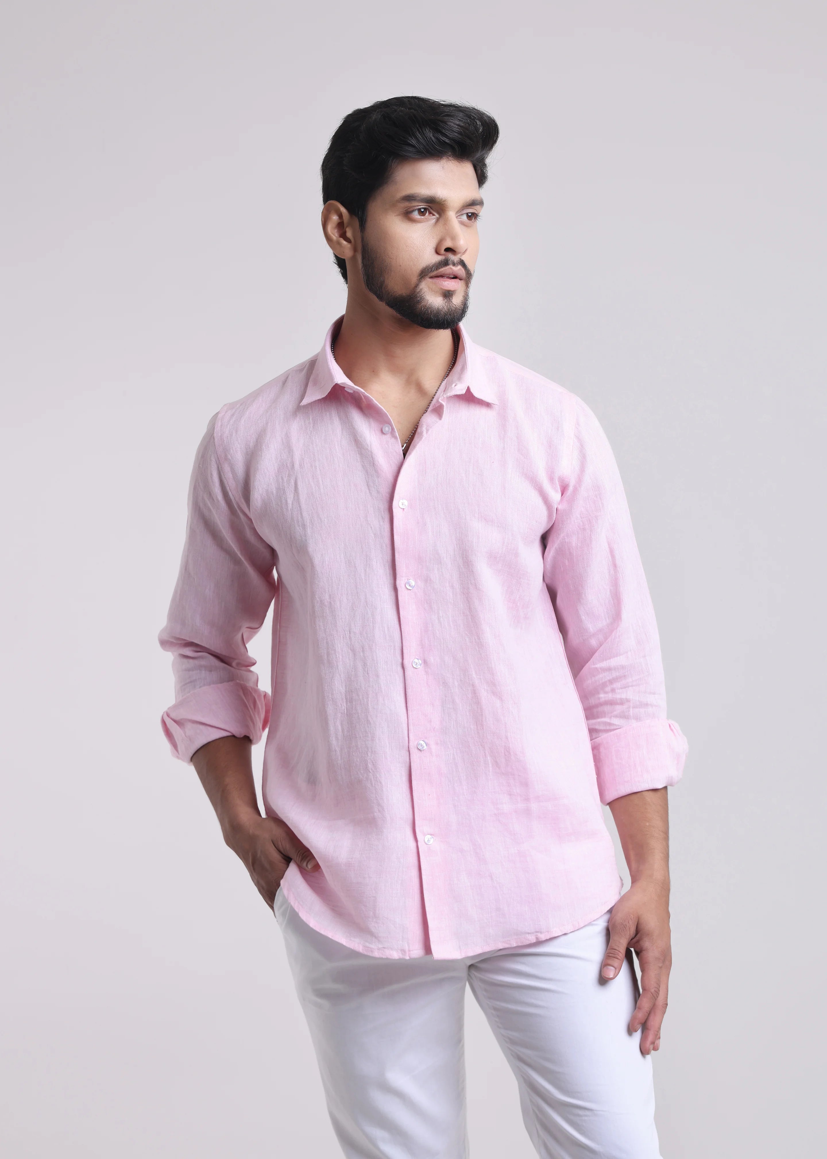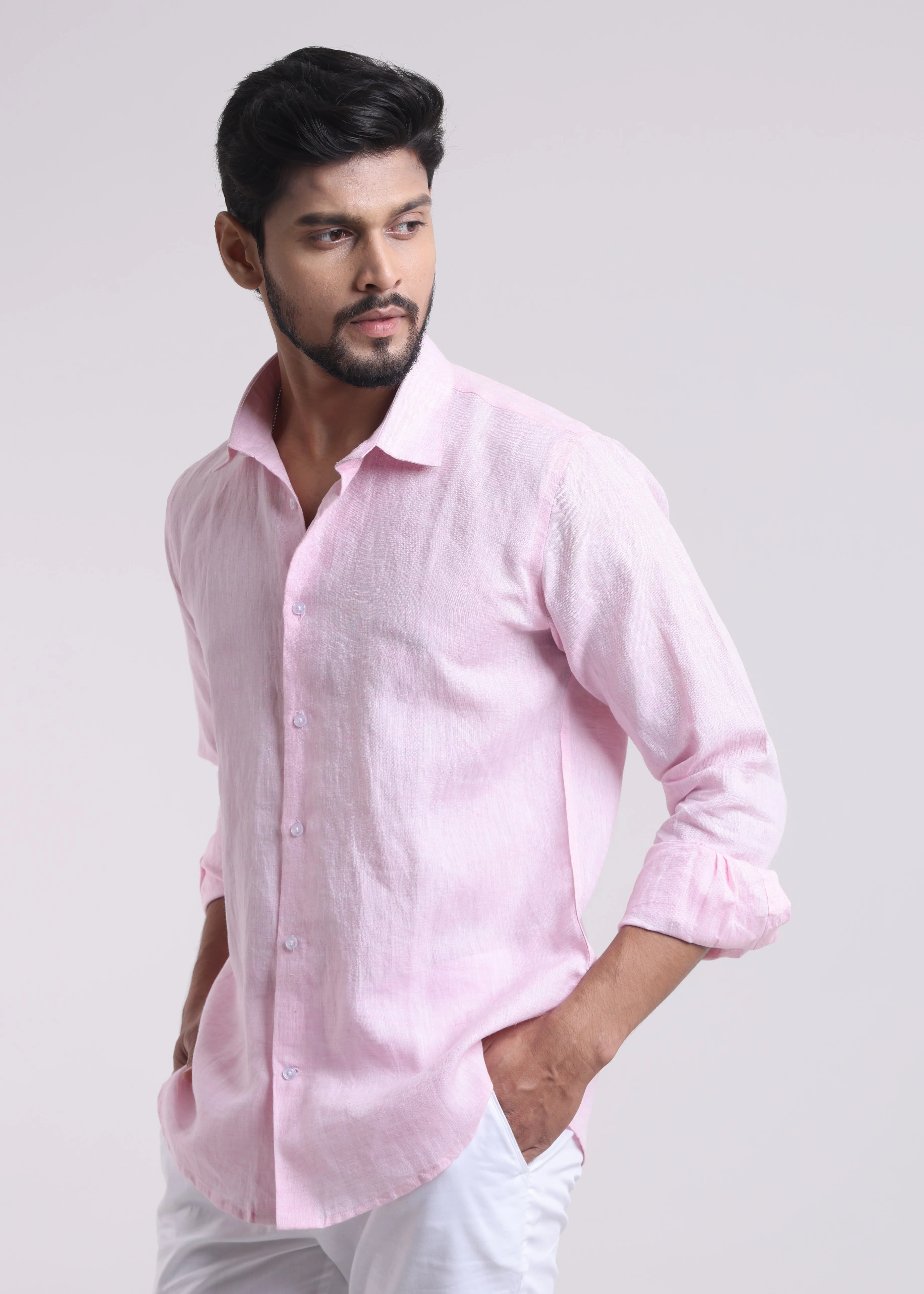 The light pink colour is an online exclusive. Regular fit. 100% linen fabric. Classic collar. Button fastening on the front section. Buttoned cuffs with long sleeve. Rounded hem.